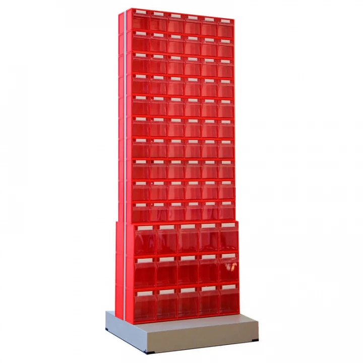 Серый (рама), красный/прозрачный (коробы)